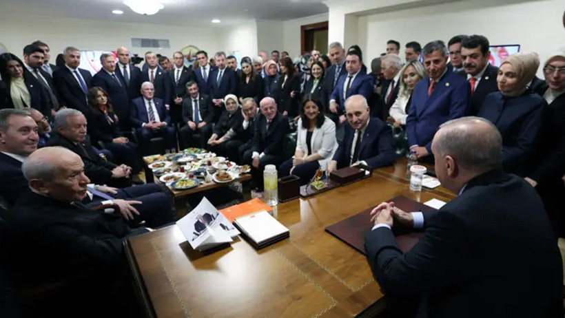 Erdoğan’ın, MHP Genel Başkanı Devlet Bahçeli, DEM Parti Eş Genel Başkanları Tuncer Bakırhan ve Tülay Hatimoğulları, Yeniden Refah Partisi Genel Başkanı Fatih Erbakan, Gelecek Partisi lideri Ahmet Davutoğlu ve DEVA Partisi Genel Başkanı Ali Babacan’la bir araya geldiği kareler gündeme oturmuştu.