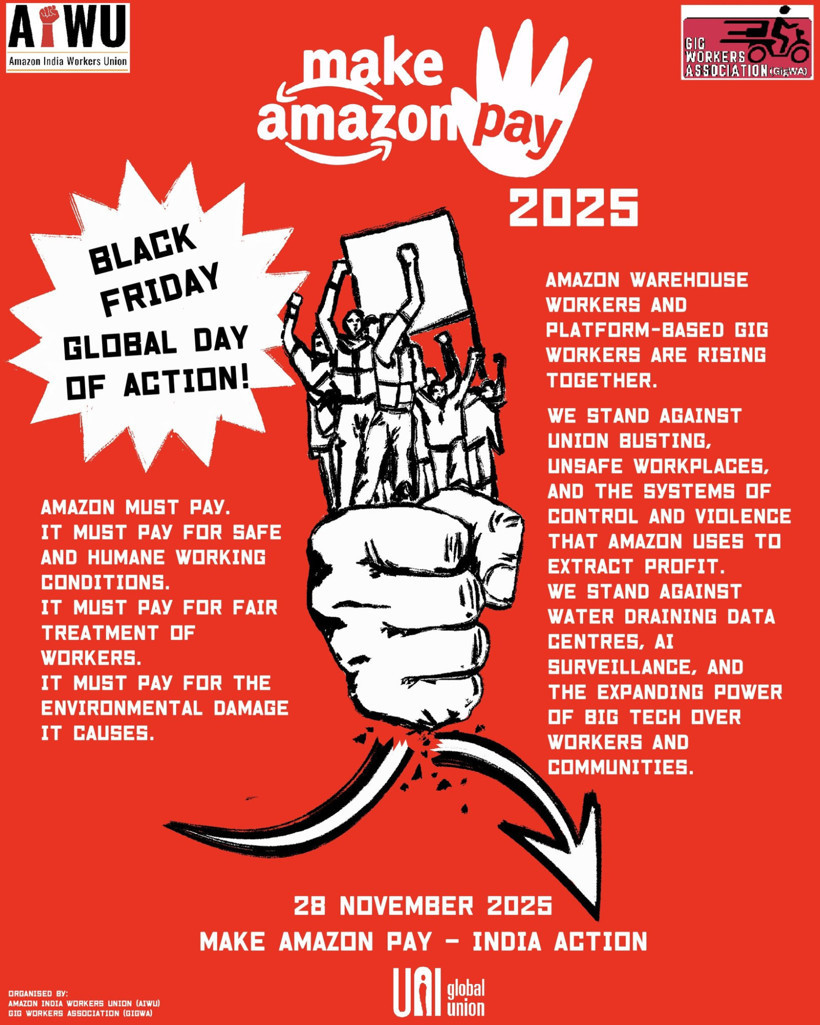 Dünyanın lojistik ve e-ticaret devlerinden Amazon’un faaliyet gösterdiği 30’dan fazla ülkede eş zamanlı eylemler düzenlendi. Sendikalar, çevre örgütleri ve insan hakları gruplarının dahil olduğu “Make Amazon Pay” (Amazon Ödesin) kampanyasıyla şirketin düşük ücret politikaları, çalışma koşulları ve sendika karşıtı tutumu protesto ediliyor.